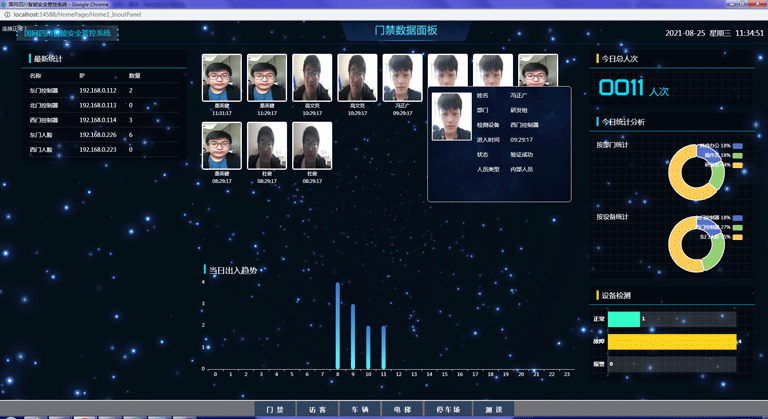 實(shí)時(shí)監(jiān)控出入人員刷卡或人臉識(shí)別情況